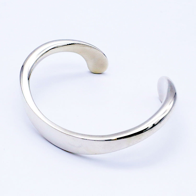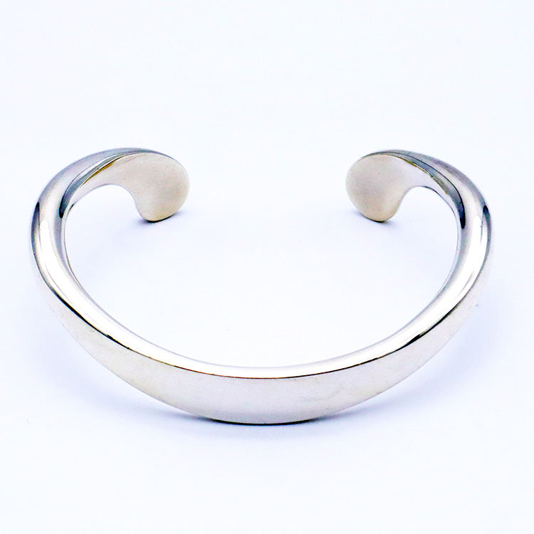 艶やかでミニマルなスターリングシルバーのバングルは、いつものコーディネートにさりげないラグジュアリーとエレガンスを添えます。
